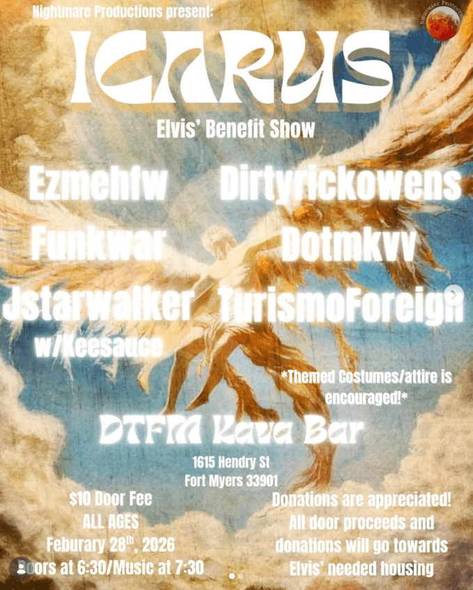 We present Icarus! This month, we’re coming together in support for our lovely friend and scene goer, Elvis. Featuring some of our favorite artists in the scene.