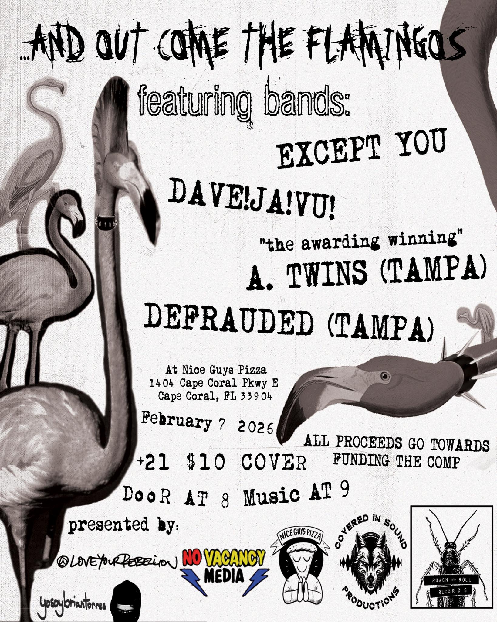 Nice Guys Pizza 1404 Cape Coral Pkwy E, Cape Coral, FL, United StatesJoin LYR at Nice Guys Pizza from 8pm - 12am for the Swamp Rag Release Party, featuring ezmehfw b2b dthkat plus skinny chome & latinrock. Plus, get a free copy of Issue 1. $10 // 21+